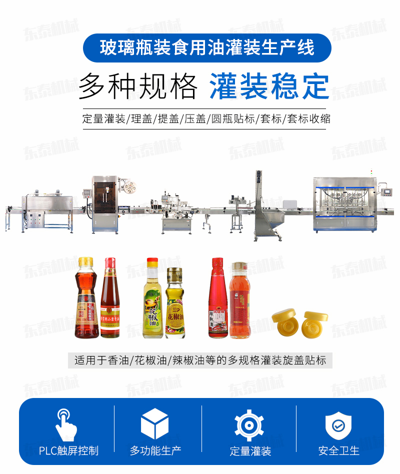 通過以上的花生油灌裝機我們都可以看的出來這些亮點,也不難去發現走俏市場的原因,高性價比是具誘惑力的因素,目前花生油灌裝機提升了客戶工作效率,又改進了包裝質量。在一些高溫工作的環境條件下,商家既需要質量,又需要效率,人工操作很難滿足生產廠家的需求,要想節約生產成本 減少勞動力只有選擇這款花生油灌裝機的幫助了,由此可見花生油灌裝機不僅是越來越自動化了還會越來越快的走向更多的包裝市場域之中。